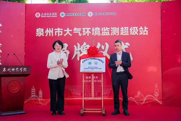 仪式现场,泉州师范学院校长陈昌萍与 永利博彩副局长林庆梅共同为超级站揭牌。该超级站是校地践行习近平生态文明思想的创新实践,通过整合双方资源,将实现监测数据与治理需求的精准对接,推动环保科技成果快速转化,为区域大气环境治理提供可复制、可推广的“泉州方案”。